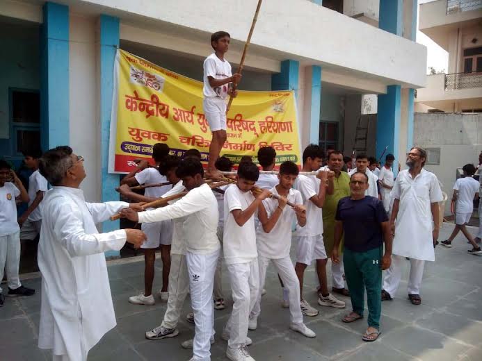 फरीदाबाद। सैक्टर-19 स्थित रोटरी पब्लिक स्कूल में चल रहे केंद्रीय आर्य युवक परिषद हरियाणा के 7 दिवसीय युवक चरित्र निर्माण शिविर में शिविरार्थी जमकर पसीना बहाकर शिविर को कामयाब बनाने का प्रयास कर रहे हैं। यह जानकारी देेते हुए केंद्रीय आर्य युवक परिषद हरियाणा के महामंत्री डा. वीरेंद्र शास्त्री ने बताया कि इस शिविर में जिले भर से 90 से अधिक युवक हिस्सा ले रहे हैं जिन्हें व्यायामाचार्यों द्वारा लाठी, दंड बैठक, तलवारबाजी, ध्यान, योग, प्राणायाम, जूडो, कराटे व अन्य विधाओं के द्वारा बच्चों को आत्मरक्षा हेतू प्रशिक्षित किया जा रहा है।